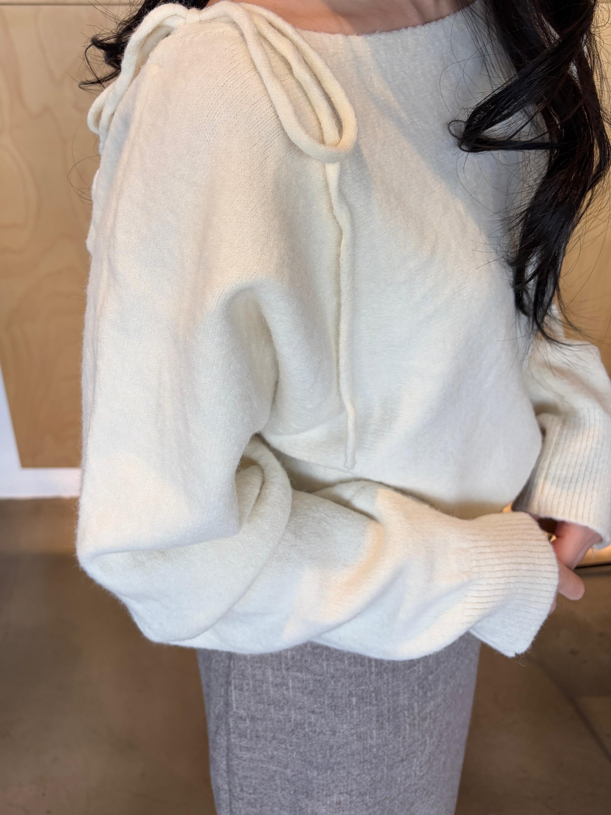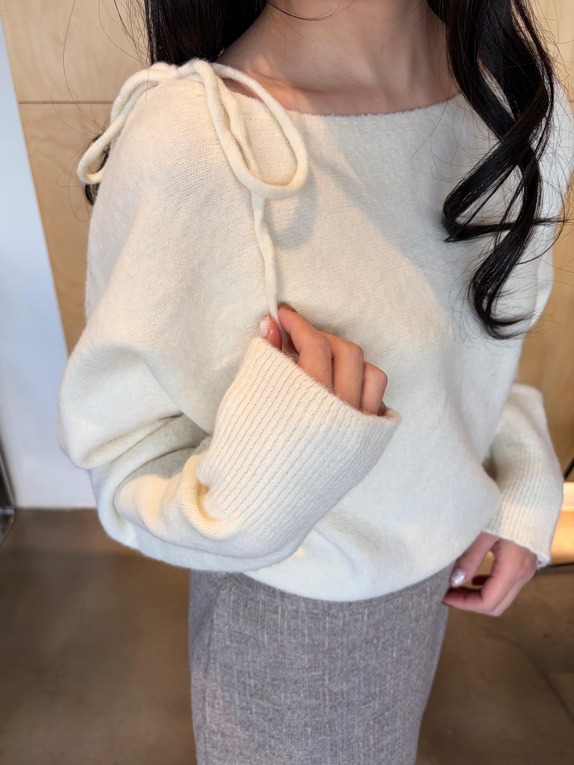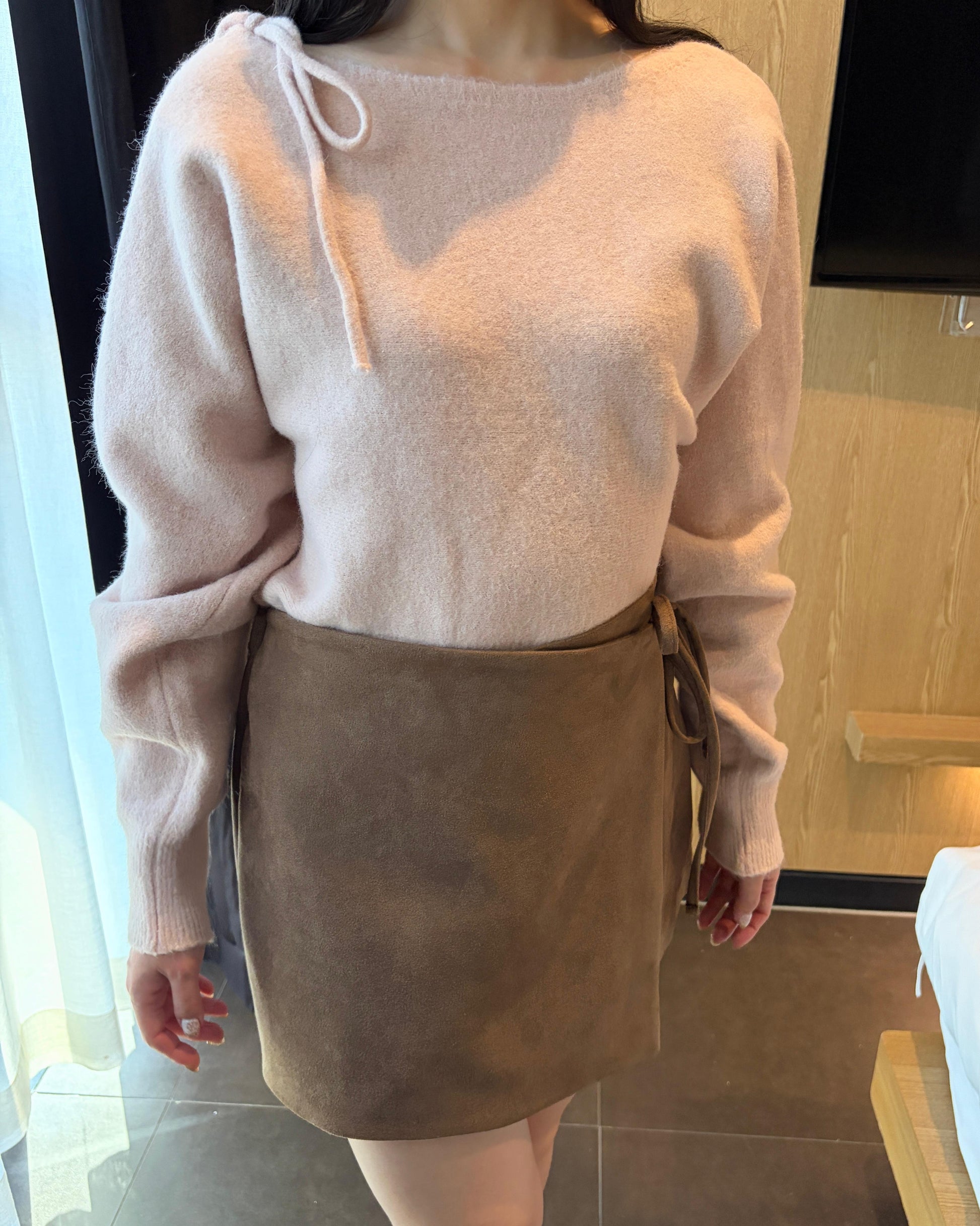 CO002《現貨新款》單邊綁繩蝴蝶結甜美風格上衣