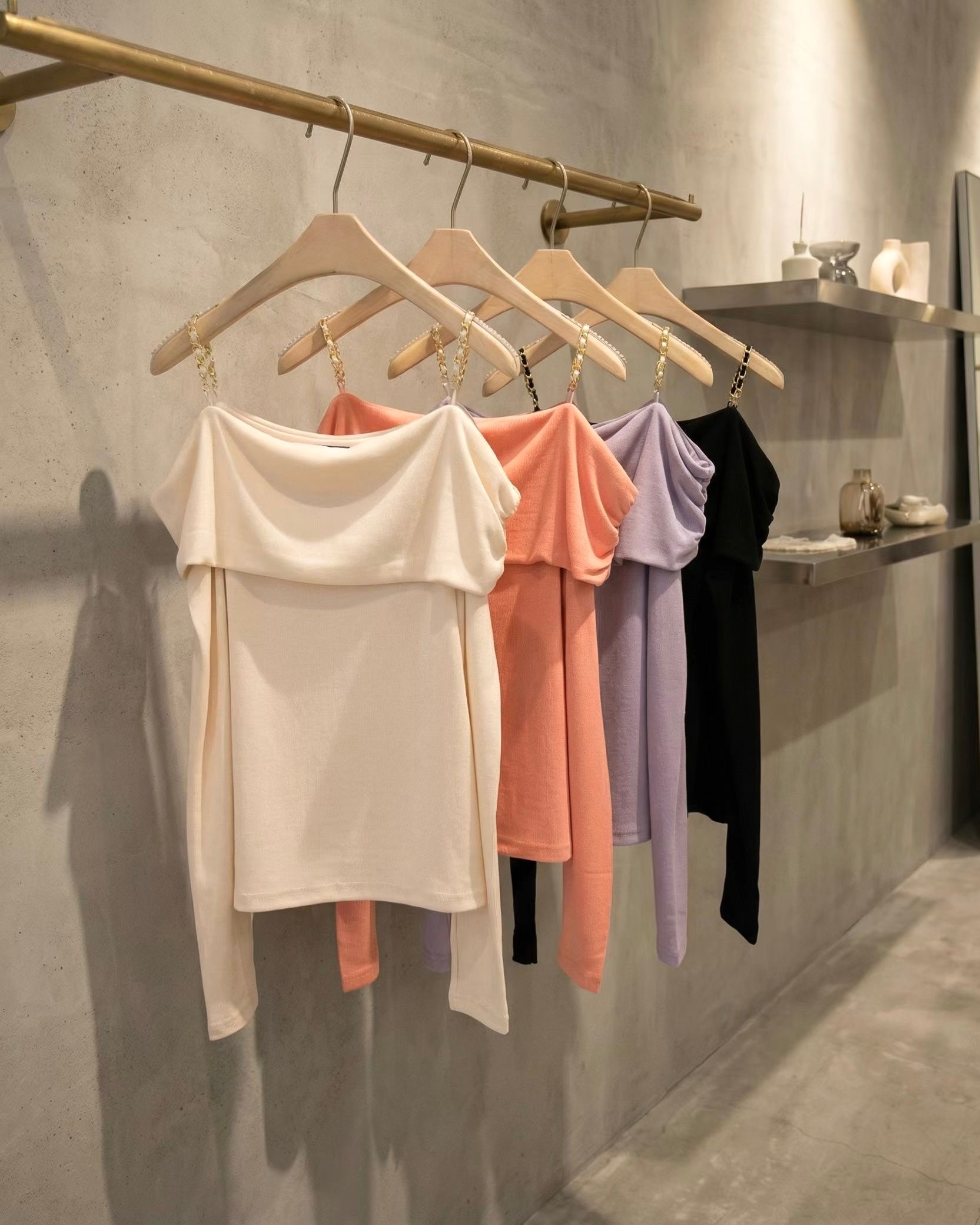 ST007【2月新品】露肩可拆肩帶溫柔上衣